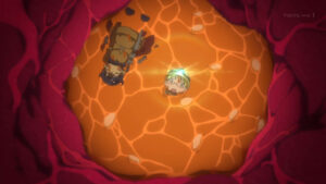 アマカガメの腹にリコとレグも取り込まれました。甘い匂いに誘われネリタンタンも罠にかかっています。