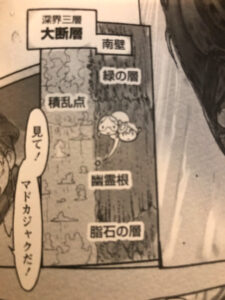 メイドインアビスの階層。今回は深界三層から深界四層を見ていきたいと思います。断崖絶壁の三層からはかなり凶暴な生物が棲んでいます。リコは第四層で致命的な重傷を負うことになります。そこでナナチと出会いました。