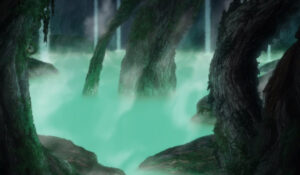 リコがレグと傷を癒やすために入った温泉。ナナチも傷ついた時には入りに来るところ。お湯だが魚が棲んでいて治療の手伝いをしてくれます。