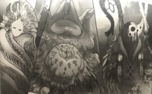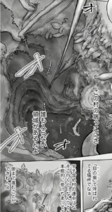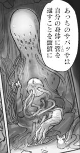 イルミューイに取り込まれたガンジャ隊の描写。左からガウメ、サバッサ、パッコヤンが描かれている。