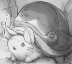 ライザの封書でのみ登場。「6層で雨宿り中に出くわしたこいつは卵のまま育つトカゲだ。幼体は 獰猛だが大して手間もかけずに食えて味もいい素敵なやつだ。この殻のおかげで鉄の雨もへっちゃららしい。」と記されていた。